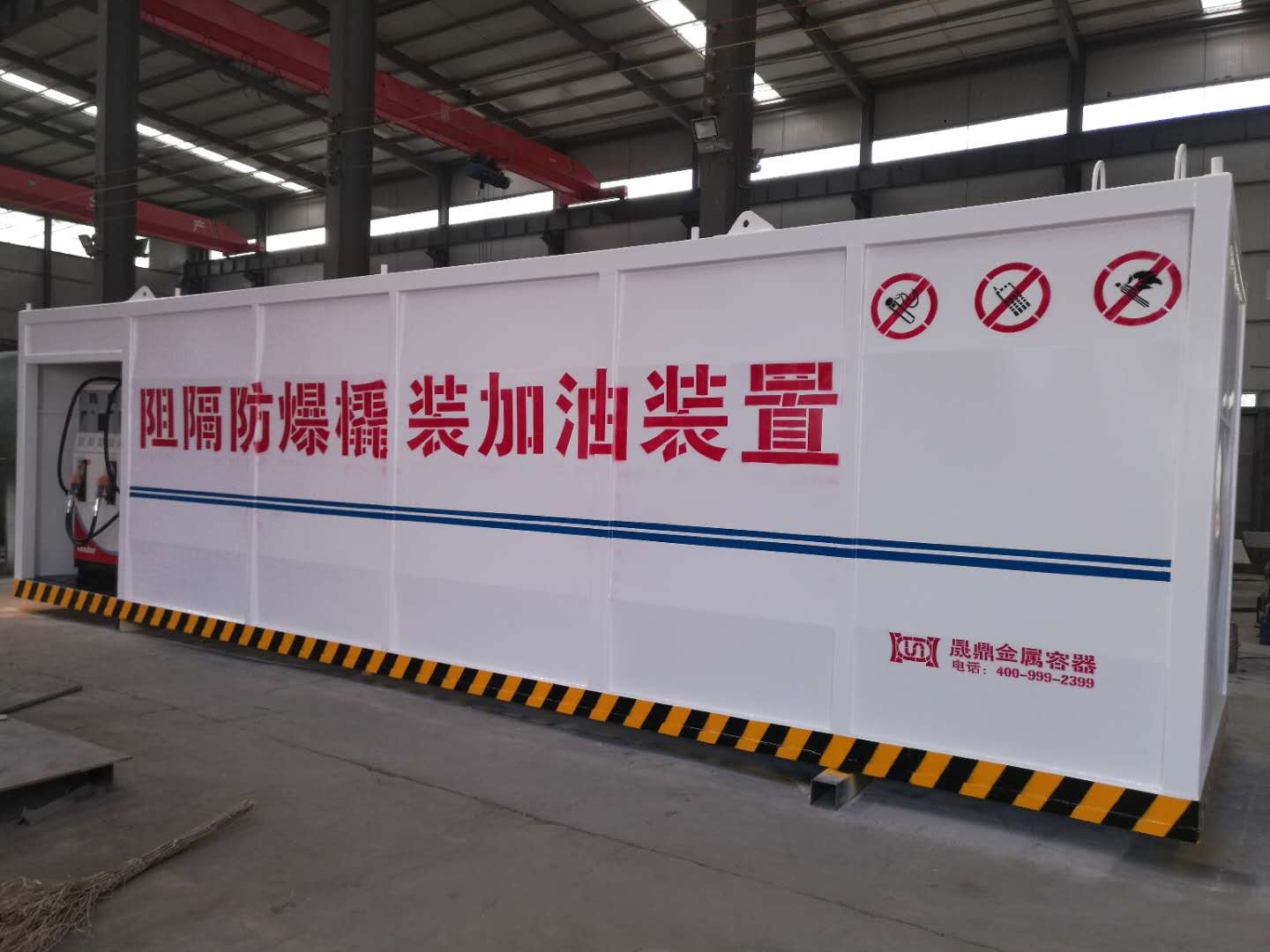 撬裝加油站從外形看,特別像一個集裝箱。里面包括儲油罐,加油機,卸油泵以及各種防爆裝置。
